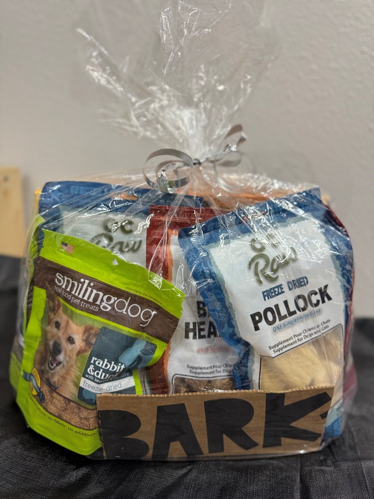 Your fur baby will love the variety of healthy and yummy treats in this basket! (Value: $140)