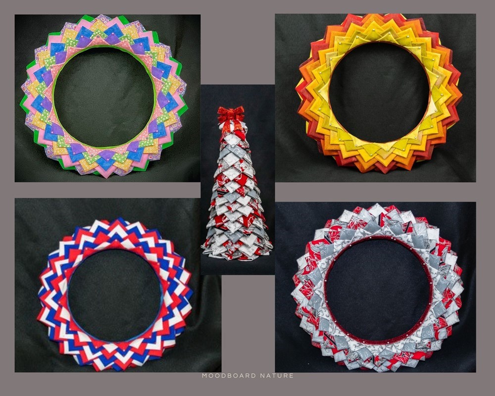 Do you like one-of-a-kind items? Well that is what you will get with these handmade folded cloth wreaths and trees. Guaranteed to brighten up your home throughout the entire year, these wreaths were made for every season. Package includes: 1 Spring Wreath 1 Summer/Patriotic Wreath 1 Harvest/Autumn Wreath 1 Christmas Wreath with matching Christmas Tree If you are interested in additional wreaths/trees with custom color schemes, you can also contact Rachael Williams @ taz0008_02@yahoo.com for pricing and order info.