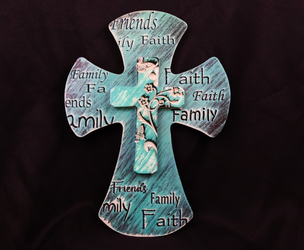 This beautiful cross was made by Harvest House Ministries. It is teal in color and all the words are carved out in a gorgeous assortment. Thisnisnsuch a wonderful gift for anyone at any age, to take to college, to put in a bedroom, or to hang in a family room.